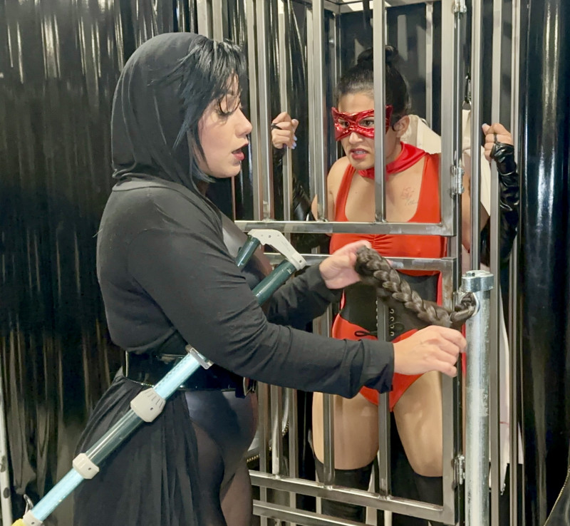 Crimson Starlet searches for Miss Mighty and it leads to Veda Vega! She soon becomes her prisoner and must endure torture and humiliation.